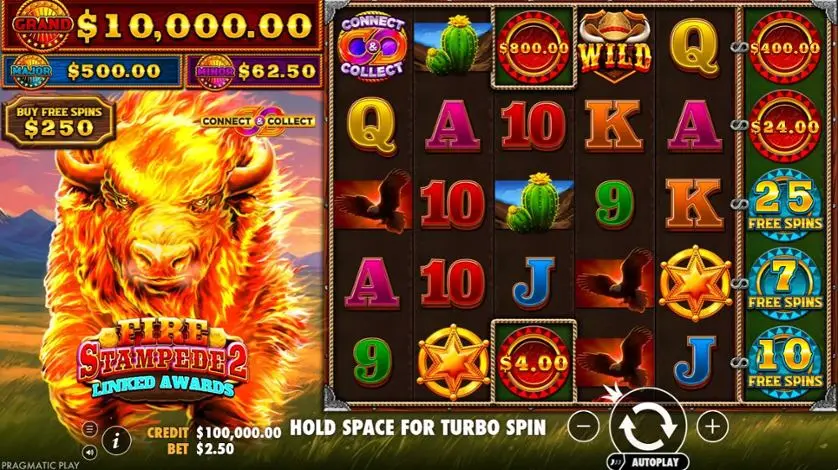 Fire Stampede 2 er en spillemaskine fra Pragmatic Play. Ud fra det antal spillere, der søger efter den, er Fire Stampede 2 ikke nogen særlig populær spillemaskine. Det betyder dog ikke nødvendigvis, at den er dårlig. Giv den et skud gratis, og se, om den er noget for dig, eller vælg et af de mere populære casinospil.